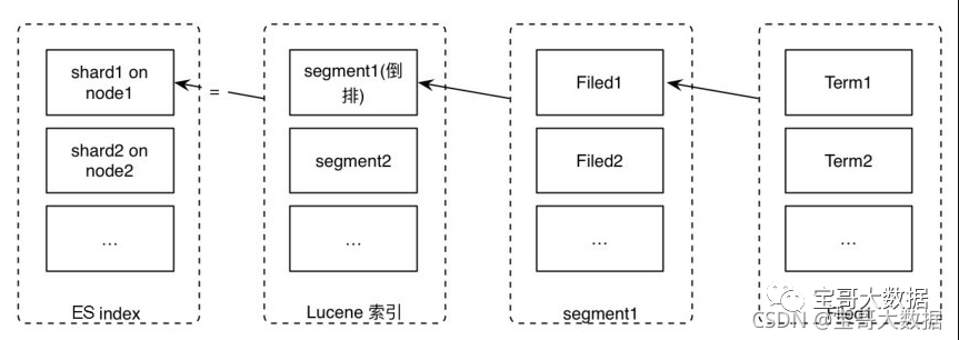 一个ES索引包含很多分片,一个分片是一个Lucene的索引,它本身就是一个完整的搜索引擎,可以独立执行建立索引和搜索任务。Lucene索引又由很多分段组成,每个分段都是一个倒排索引。ES每次“refresh”都会生成一个新的分段,其中包含若干文档的数据。在每个分段内部,文档的不同字段被单独建立索引。每个字段的值由若干词(Term)组成,Term是原文本内容经过分词器处理和语言处理后的最终结果(例如,去除标点符号和转换为词根)。