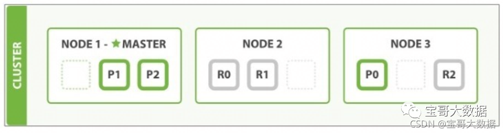 其中,P代表Primary shard; R代表Replica shard。以后出现的内容使用相同的简称。