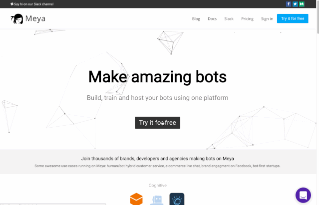 人工智能聊天机器人掀起了一场用户体验革命。只要用户需要,机器人就能提供有用的信息。一些企业应用AI聊天机器人为客户提供积极有益的帮助,企业也因此得到了长足的发展。该平台拥有代码编辑器、在线调试程序及可视化工具。在Meya的帮助下,企业可以将AI技术应用于用户服务,创建机器人来帮助用户传递信息,提供用户支持服务。Meya可作为机器人的主机,创建及训练机器人,推广机器人也非常简单。Meya与很多第三方应用都能兼容,可用性很强。