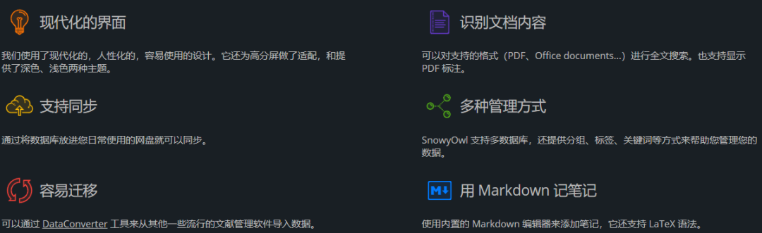 这个软件值得一赞的是他开发了数据迁移工具,他可以把其他文献管理软件的文献库迁移到SnowyOwl,这点值得其他文献管理软件学习。