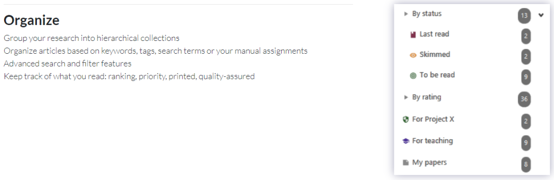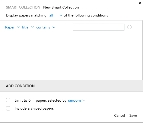 智能收藏集。智能收藏集能根据文献的各种信息创建一个收藏集的规则,自动添加文献。