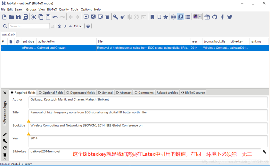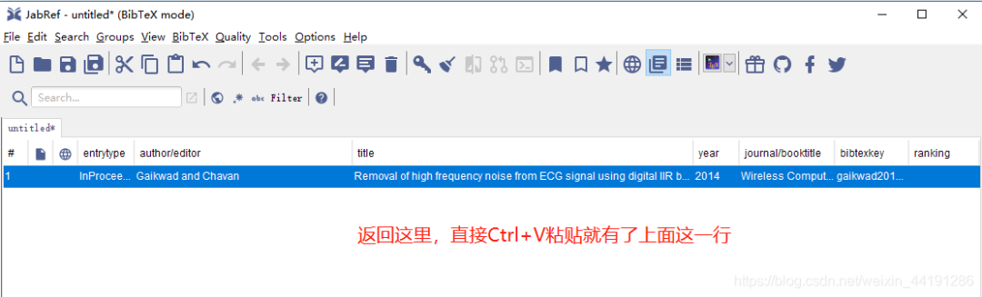 通过以上3步然后保存一下基本上就可以了,但是有时候BibTex文件会有问题,需要手动修改一下。这就需要直接双击需要修改的那一行,就可以在下面修改了