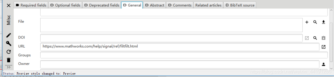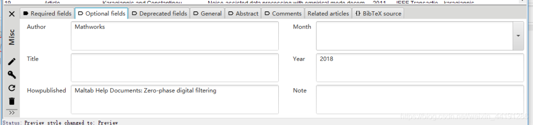 新建BibTex。这里需要将Matlab的filtfilt函数的help文档作为引用,选用Misc。