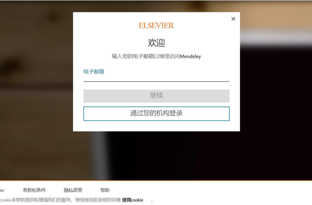 直接到了登录界面,没有账户的话,要去M的主页去注册账号,这里的账号和Elsevier是通用的,如果有爱思唯尔的账户,就可以直接登录。