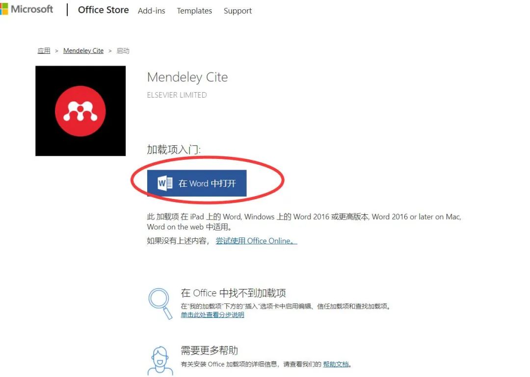 下面看安装word插件,点了第二个之后,会出现下面页面,依次点立即获取,程序就会从微软站点自动安装,最后点在word中打开,就安装好了。在word中右边点sign in登录,就可以同步了。