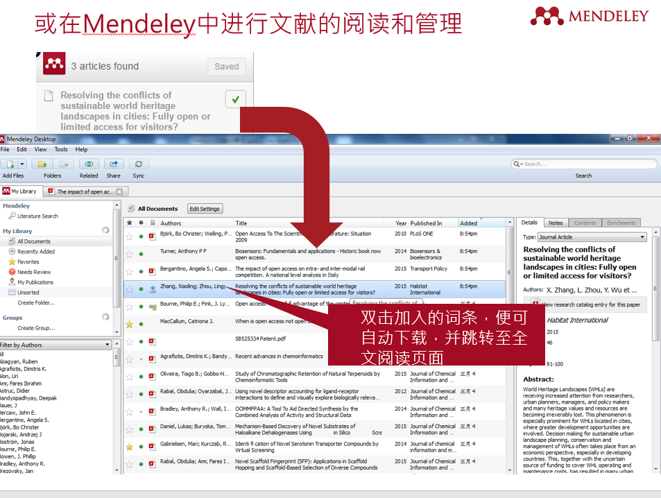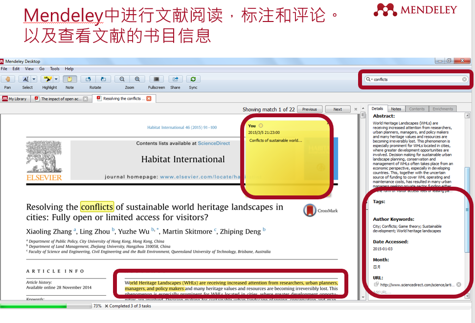 关于Mendeley:Mendeley是一款用于学术论文管理和在线共享信息的免费文献管理工具也是为中国研究者打造的全球协作平台。可以将支持Windows、Mac、Linux的桌面版与任何地方都能够在线使用的网页版组合使用。该软件也支持iOS(iPad/iPhone)。该工具集社交网络、协作工具和文献管理工具于一身。