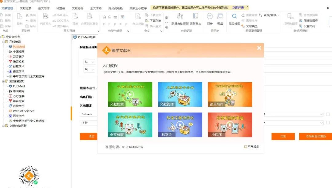 登录到软件时,会弹出视频教学窗口。软件的主界面和其他文献管理软件很类似,软件的菜单和模块也很多,我测试了在万方医学检索和下载文献很方便、很快。