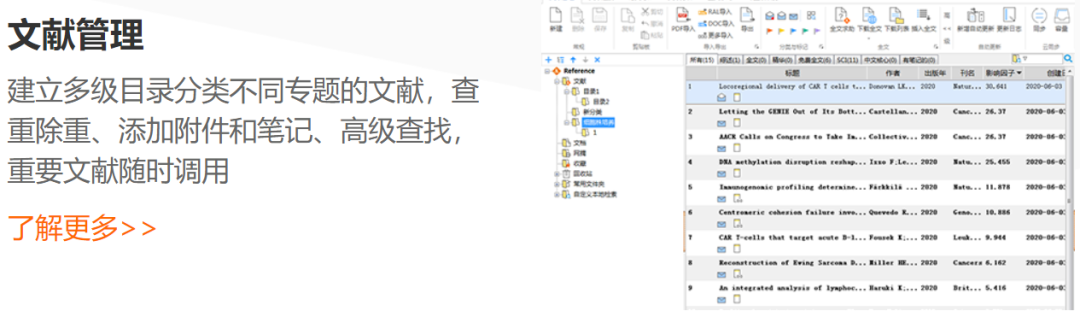 网站介绍:《医学文献王》是北京金叶天成科技有限公司开发的文献检索和管理软件。从2004年至今,已经陆续推出了V1.0、V2.0、V3.0、V4.0和V5.0版。基于对客户满意度的不懈追求,现在推出《医学文献王》V6版。《医学文献王》具有智能化文献收集、专业化文献管理、便捷全文获取和自动化写作辅助四大特点,可以大大简化您的文献管理工作,提高您的学习和工作效率。