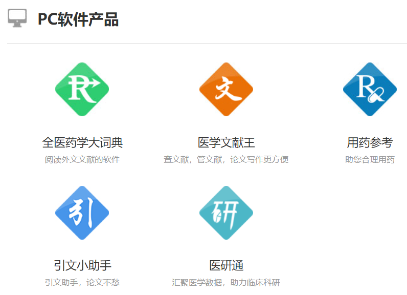 这个北京医脉互通公司的产品可不止“医学文献王”这一个文献管理软件,进入公司主页,点产品,发现有很多宝贝,医学研究人士的福音。