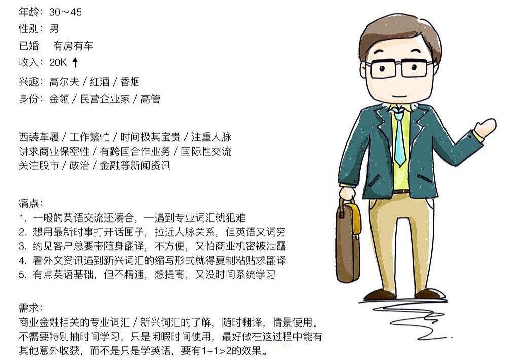 一种叫做Persona,也叫做用户角色,是描绘抽象一个自然人的属性。