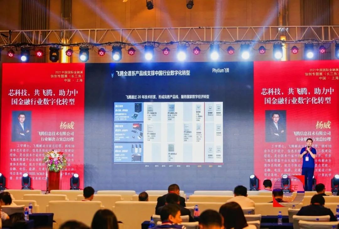 开幕式环节,飞腾公司行业解决方案总经理杨威博士作为芯片厂商代表,分享了题为《芯科技,共飞腾,助力中国金融行业数字化转型》主题报告。飞腾公司是国内领先的自主核心芯片提供商,飞腾 CPU 研发已有 20 余年技术积累,已形成最全产品谱系。基于飞腾 CPU 构建的金融整机产品,包括服务器、PC 终端、机具等多种形态产品,已经在金融行业办公、数据中心、自主终端等场景中成功批量应用。 在金融行业数字化转型过程中,飞腾助力构建系统完备、高效实用、安全可控、智能绿色的金融 IT 基础设施体系。飞腾坚持以目标导向、以用户为中心,统筹兼顾短期和长远目标,坚持安全可控和创新发展并重,利用技术创新等手段,加快金融 IT 基础设施关键核心技术产品应用,推动打造金融业信息化核心技术安全底座。目前飞腾已联合众多国产金融软硬件生态厂商,不仅精选推出了众多的金融全栈联合解决方案,而且重磅打造了飞腾金融信息化转型白皮书与飞腾金融适配与应用实验室。同时,飞腾积极参与银行、保险、证券金融创新实验室建设,投入多个金融行业核心业务系统、渠道类等改造,助力工商银行、建设银行、光大银行、中国银行、赣州银行、招商银行、邮储银行、农信银行等众多最终金融用户的信创项目实践,大大提升金融算力水平,为金融行业的数字化转型提供强劲动力。 本次展会,飞腾全方位展示全谱系芯片产品和金融解决方案。展示了基于飞腾平台一体机、台式机、服务器、金融机具,AI 相关终端产品,同时演示了综合办公系统、人工智能平台、电竞游戏、柜面业务终端等业务,受到了与会金融行业用户的高度关注。在展位上来自飞腾各相关部门代表与金融行业用户进行深入交流,积极倾听金融用户诉求,及时解答金融用户关心的问题。 飞腾公司始终坚持“核心技术自主创新,产业生态开放联合”的发展理念,以“聚焦信息系统核心芯片,支撑国家信息安全和产业发展”为使命努力成为世界一流芯片企业,用中国芯服务社会。飞腾公司通过持续的研发与创新,将积极推动新一代信息技术创新发展,为中国金融行业数字化转型高质量发展提供强大助力。