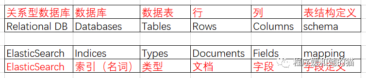 我们可以画一个简单的对比图来类比 ElasticSearch 和传统关系型数据库 MySQL,从而帮助我们更好地理解 ES 的这些概念,见下图1。
