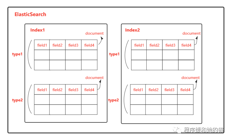 索引、类型、文档、字段在 ES 中的结构如下图2所示。