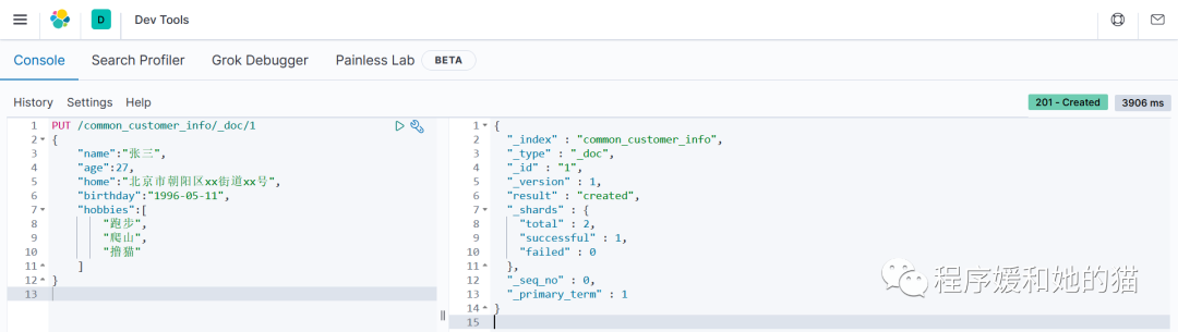 // 响应和 1 差不多,只有文档id不一样,因为 ES 生成的文档id是随机的。