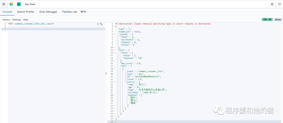 举例说明:customer_info 索引中有两个类型,分别是 common_customer_info 和 vip_customer_info,分别表示普通客户信息和vip客户信息。