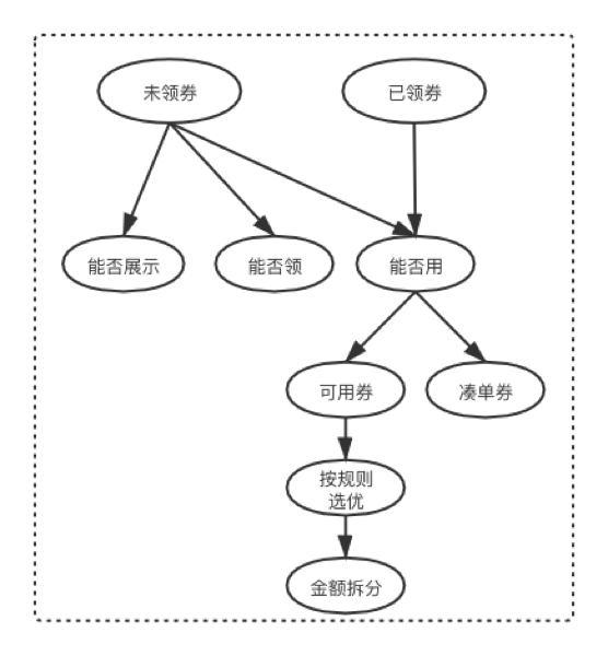 数据缓存层:5个集群,优惠券打标集群、门店券集群、用户券集群、活动集群、已使用集群。数据存储层:主要有Mysql和ES进行存储,其中用户下优惠券券数据量比较多,日均亿级的数据体量。大部分的系统可以按业务维度进行拆分,足以能解决自己耦合问题,但是优惠券是一个复杂的单体系统,我们一起来看下单体系统我们是如何拆分的。