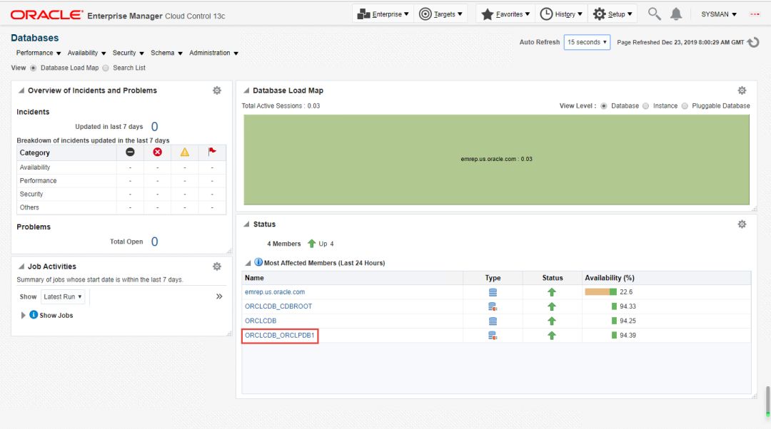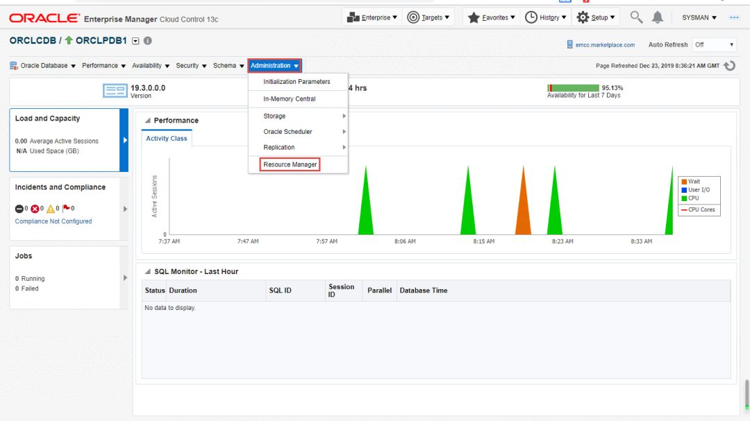 第二步:进入EM13c来到ORCLPDB1这个PDB