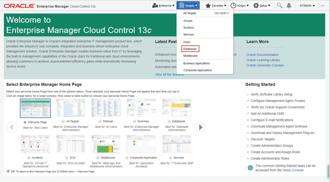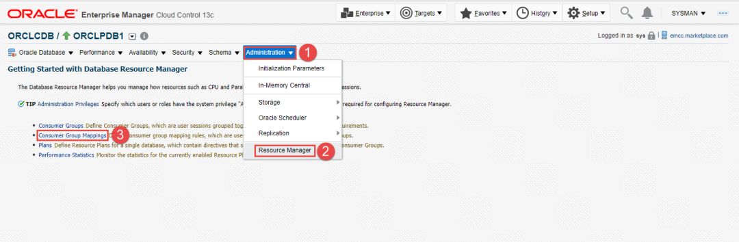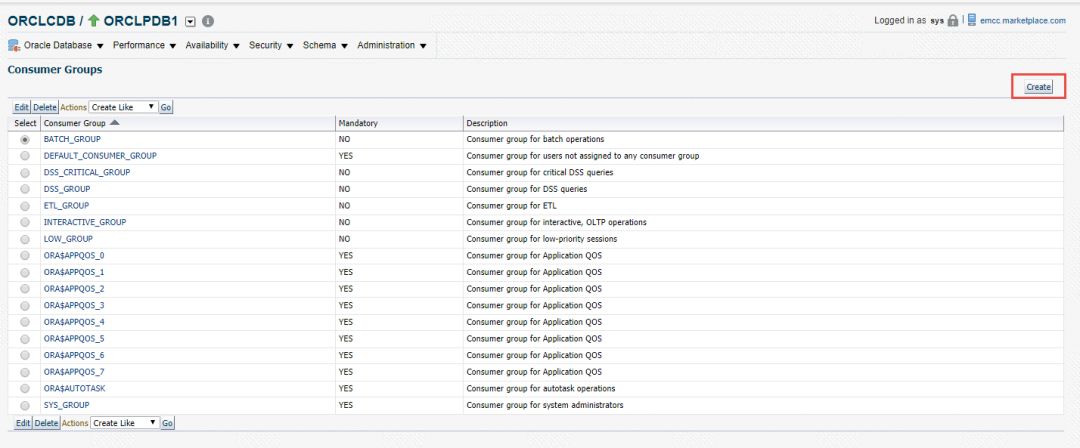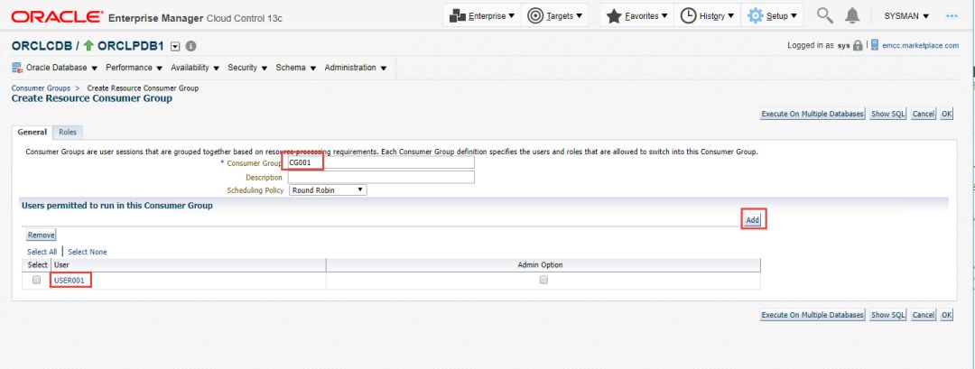 接下来我们就使用EM13c来创建用户组及资源计划。