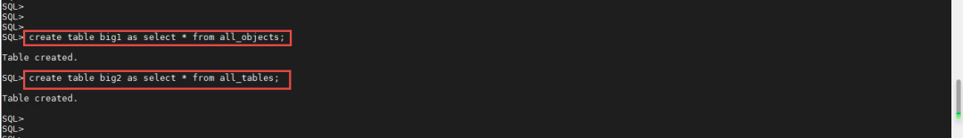 第七步:在ORCLPDB1当中创建两个比较大的table并执行运行较长时间的SQL