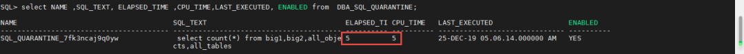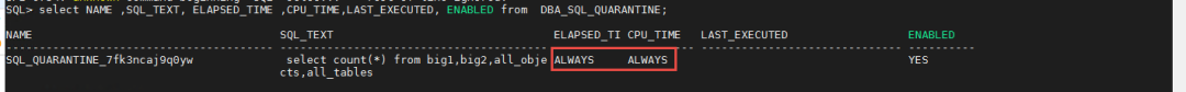 稍后再次执行相同的语句,就会发现SQL隔离也生效了。这可以认为是SQL隔离的自动设定方式,所用参数来自资源计划。