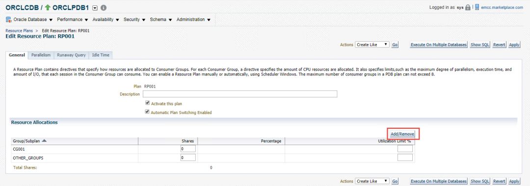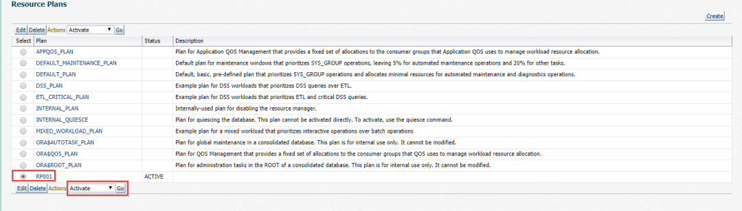 2、建议大家使用EM13c创建资源计划,然后让系统自动生成SQL隔离,您可以通过DBMS包对SQL隔离中的参数进行调整。
