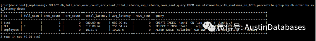 所以在MYSQL 越来越往SYS 库去获取性能的数据的情况,下面就是一个例子 使用 sys.statements_with_runtimes_in_95th_percentile