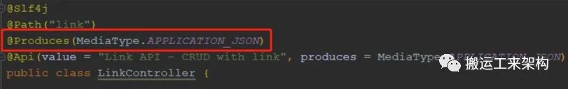 发现Controller上面被@Produces注解, 并且使用MediaType.APPLICATION_JSON,即application/json。所以基本上就知道异常问题的罪魁祸首了吧。