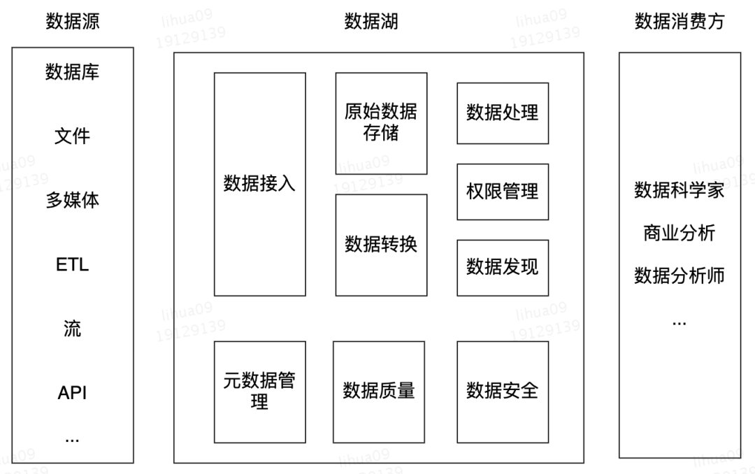 数据湖存储的数据量巨大且来源多样,数据湖应该支持异构和多样的存储,如HDFS、HBase、Hive等,存储原始格式的数据;