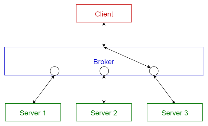 服务器将其功能(服务和特征)发布给代理。客户端从代理请求服务,然后代理将客户端重定向到其注册中心的适当服务。