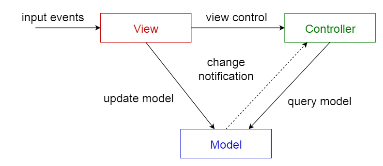 模型:包含核心功能和数据 视图:将信息显示给用户(可以定义多个视图) 控制器:处理用户输入的信息