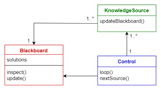 黑板——包含来自解决方案空间的对象的结构化全局内存 知识源——专门的模块和它们自己的表示 控制组件——选择、配置和执行模块