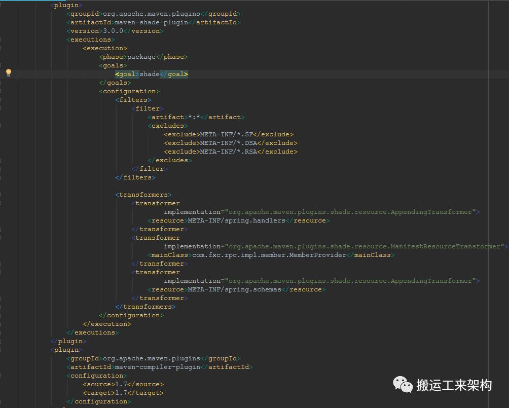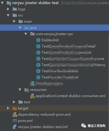 4、由于我们的项目是使用maven构建,那么pom文件就需要进行相关的配置。一般在写压测代码时,只要将下面配置复制到pom.xml即可。
