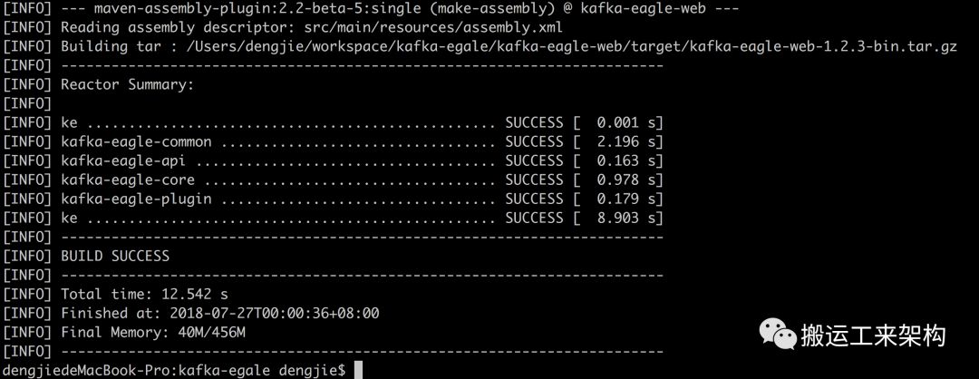 然后,进入到Kafka Eagle源代码根目录,在根目录中有一个build.sh的脚本,执行该脚本进行源代码编译。编译成功后,控制台会打印相关信息,如下图所示: