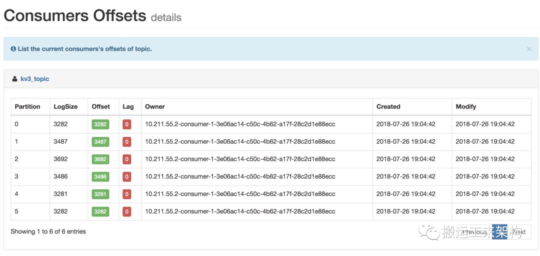 如果你使用的Kafka 0.10.x之后的版本,然后消费者API也是使用的最新的写法,那么自然你的消费者信息会被记录到Kafka内部主题中,那么此时你设置kafka.eagle.offset.storage=kafka这个属性,Kafka Eagle系统可以完美展示你的消费者使用情况。
