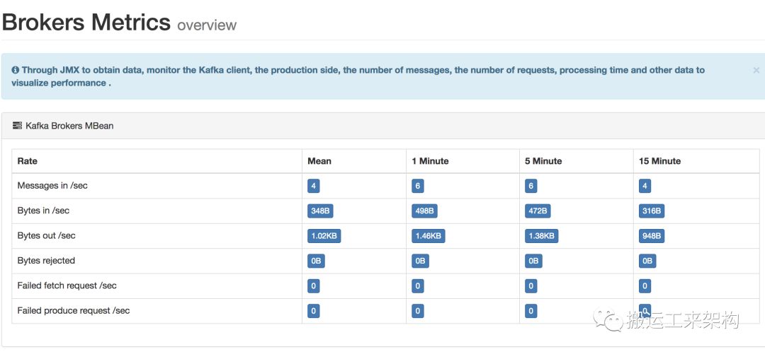 需要注意的时,这里的端口不一定非要设置成9999,端口只有可用,均可。Kafka Eagle系统会自动获取这个JMX端口,采集结果如下: