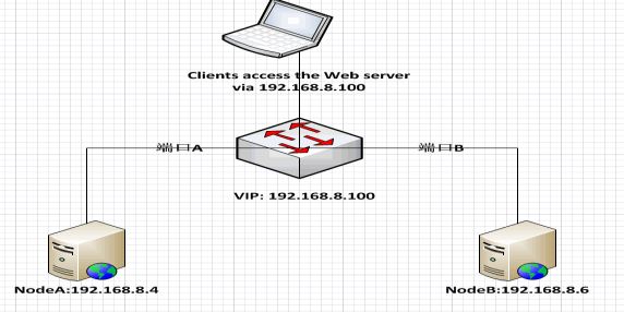 节点A 192.168.8.4 (主节点), 节点B 192.168.8.6(备用节点),虚拟IP(对外提供服务的IP 192.168.8.100)。