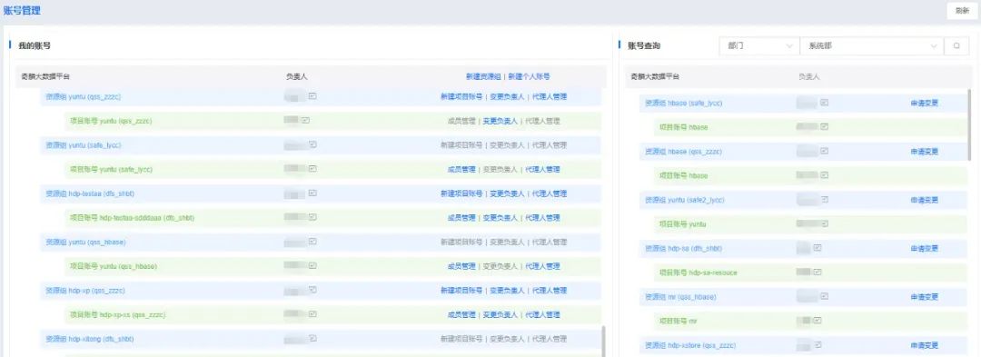 使用奇麟平台,首先需要在权限中心à账号管理下,申请创建资源组和项目账号。