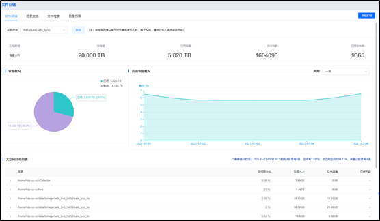 奇麟资源管理模块,以项目账号为维度,展示了该项目账号下各类资源的使用情况,在资源不足时,可以进行资源扩容申请。另外,各项目账号可以对自己资源中的权限进行管理,比如:HDFS目录权限,Hive/HBase表权限等。注: