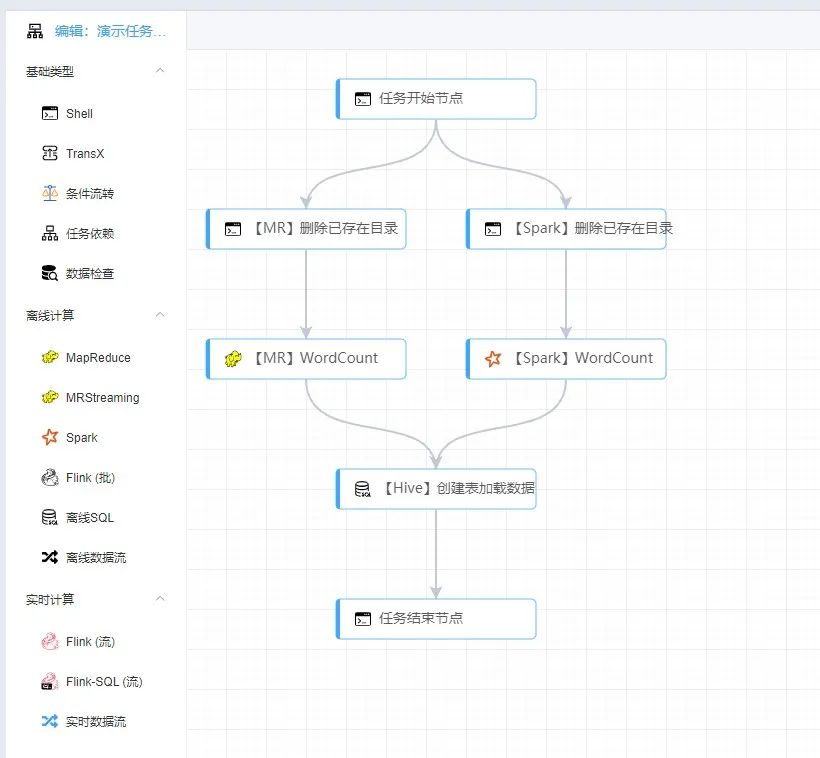 用户可以在任务开发平台中通过拖拽、配置以及简单的开发,完成业务数据处理流程。