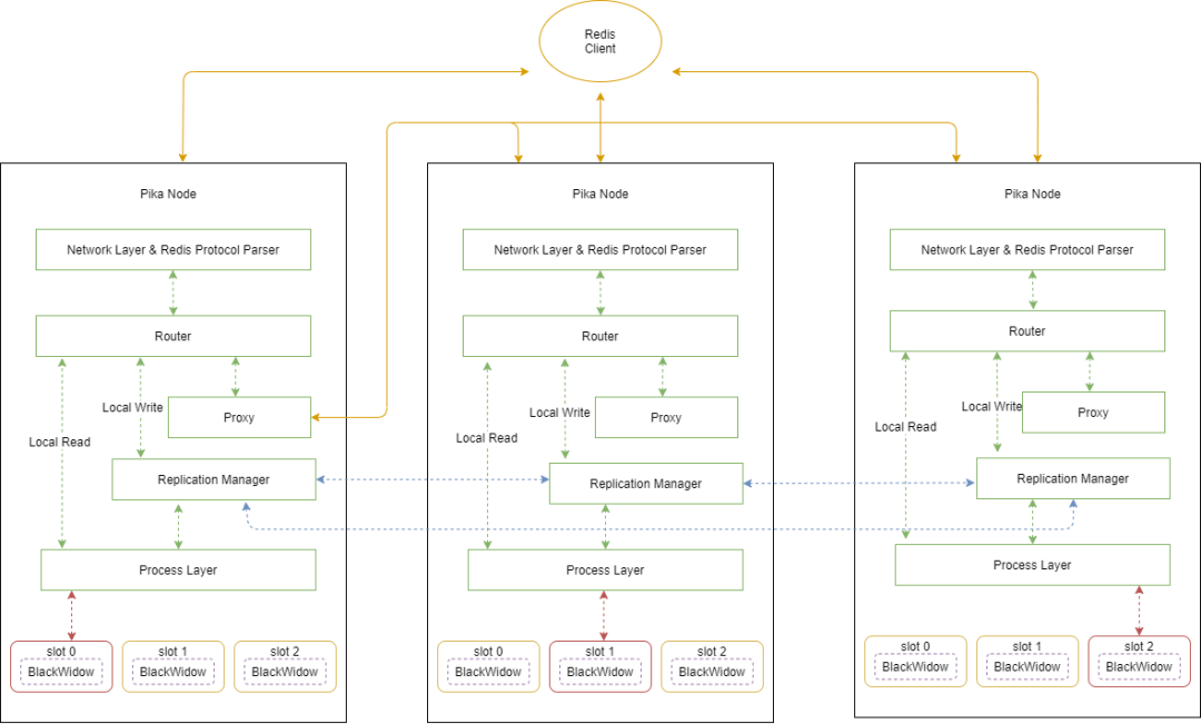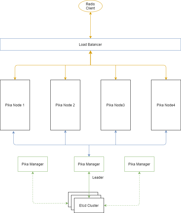 Pika是一个可持久化的大容量redis存储服务,兼容string、hash、list、zset、set的绝大部分接口(兼容详情),解决redis由于存储数据量巨大而导致内存不够用的容量瓶颈。用户可以不修改任何代码从redis迁移到pika服务。由于单机pika容量受限于单块硬盘容量的大小,360公司业务和社区对分布式pika集群的需求越来越强烈,因此我们推出了原生分布式pika集群,发布pika版本v3.4。与pika+codis集群方案相比,pika集群不需要额外部署codis-proxy模块,同时由于codis对pika创建和管理slot操作的支持并不友好,需要运维人员大量介入。