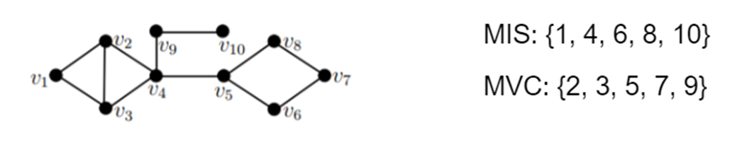 例如下图中,可以找到如下最大独立集和最小顶点覆盖: