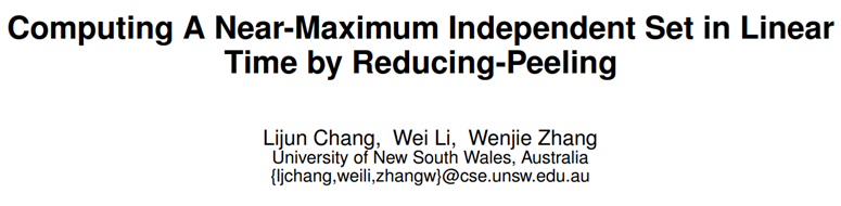 原文《Computing A Near-MaximumIndependent Set in Linear Time by Reducing-Peeling》发表在SIGMOD2017。