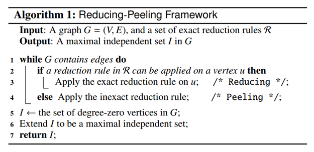 故作者针对这三个特征,提出了reduction-peeling 框架来求解MIS问题,本质上属于启发式方法。