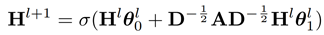 为第l层可学习的参数,D为图的度数对角矩阵,