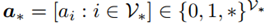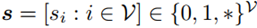 ,其中*代表当前节点状态未定;1代表该节点出现在MIS解集中;0代表不出现在MIS解集中。初始时刻每个节点的状态都是*。终止条件为每个节点都赋有非未定状态,或者运行时间超过设定的阈值。