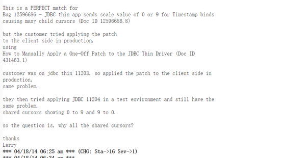 从上面截图的MOS文档来看,JDBC版本升级到11203或11204仍有发生此例绑定变量传值问题。