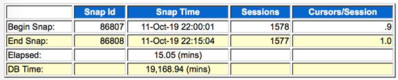 采集故障期间的AWR,发现当时DB TIME接近2w,平均活动会话达到1200+。