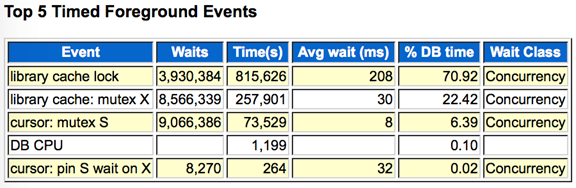 排在前五的等待事件都属于并发类的等待事件,其中cursor:mutex S等待次数最多。