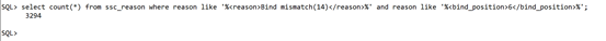 其中Bind mismatch(14)的也有3294个,这个主要是绑定变量TIMESTAMP类型传值到DATE类型导致的问题。Bind mismatch(14)多发生在第6个绑定变量上,对应表中第7个字段,该字段正好的DATE类型。
