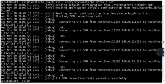 [root@monitor ~]# masterha_check_ssh--conf=/etc/masterha_default.cnf